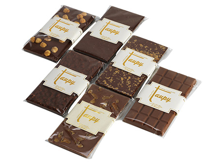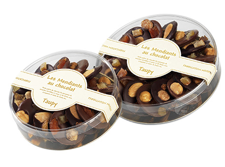 Décliné en simple, noisettes, riz soufflés et fruits confits